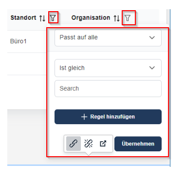 Die Suche prüft auf die Inhalte der angezeigten Spalten.