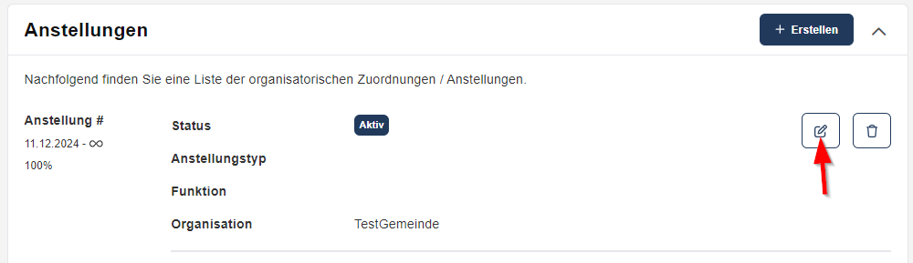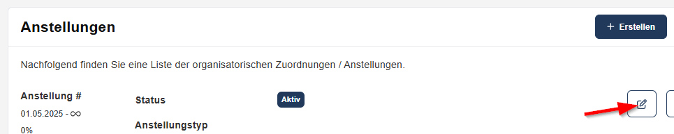 • Im Reiter "Anstellungen" auf das Bearbeiten-Icon klicken