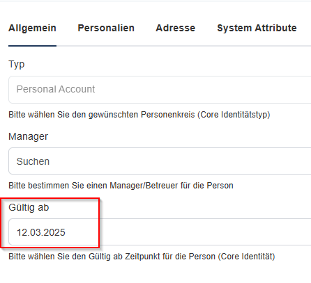 Wenn das "Gültig ab"-Datum eines Benutzers vorverlegt werden soll, sind zwei Stellen anzupassen:
