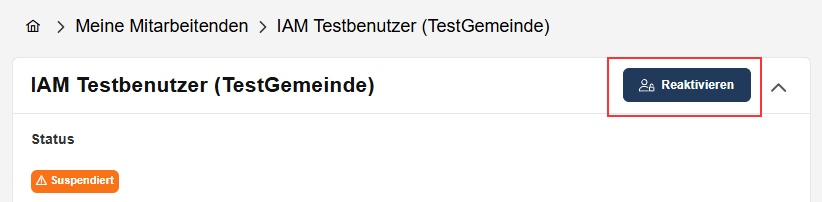 Zum Reaktiveren in die Detailansicht des Benutzers wechseln und oben rechts auf "Reaktiveren" klicken: