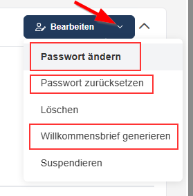 - Wählen Sie im Dropdown-Menü den Eintrag "Passwort zurücksetzen".