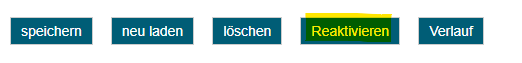 Bei längerer Abwesenheit eines Benutzers kann der Account inaktiv gesetzt werden. Der Benutzer, sowie der zuständige Administrator erhalten ein Mail zur Information. Der Benutzeraccount kann jederzeit wieder reaktiviert werden über den entsprechenden Button: