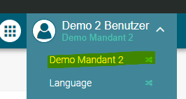 Prüfen Sie, ob Sie sich im korrekten Kontext befinden. Benutzer können verschiedenen "Organisationen" zugewiesen sein. Sie können oben rechts die Organisation wechseln, falls für Ihren Mandanten mehrere definiert sind: