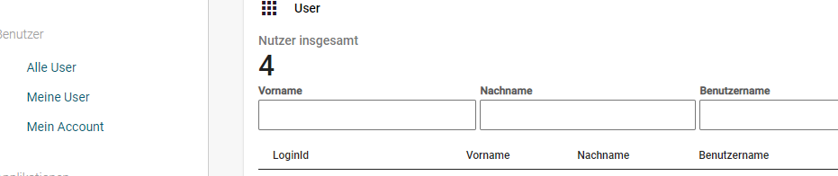 - Suchen Sie anschliessend über die Suchfelder nach dem entsprechenden Benutzer: