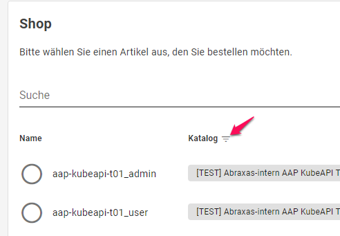 Hinweis: Wir arbeiten mit dem Hersteller an weiteren Optimierungen der Dialoge, um Berechtigungen bei vielen Einträgen leichter zu finden und die User-Experience des Bestellvorgangs generell zu optimieren. Falls du Inputs zur Shop-Funktionalität hast, sende uns gerne eine E-Mail an iam@abraxas.ch.
