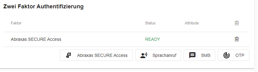 Klicken Sie auf der Zeile "Abraxas SECURE Access" auf der rechten Seite auf das Papierkorb-Symbol und bestätigen die Sicherheitsabfrage zur Löschung.